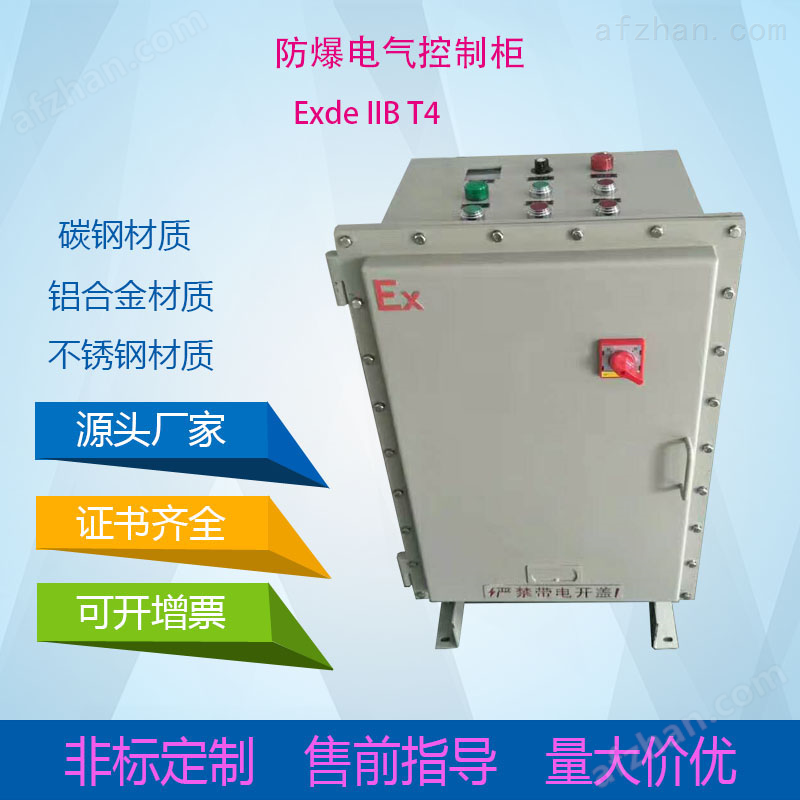 装配前应对零、部件的主要配合尺寸进行复查。,内装元件及信号灯颜色请用户在选型时予以注明,该产品根据用户要求变化多端,订货时须提供电气线路图,开关操作机构简单实用,动作可靠;,控制箱内部元件可根据用户的要求进行排列,可实现多种功能,控制开关有多种功能可供选择。指示灯也有多种颜色可供选择。由于该产品变化种类多,订货时请提供线路图。防爆控制箱外壳采用钢板焊接或铸铝合金压铸成型, 表面高压静电喷塑,产品整体一般采用隔爆型外壳和增安型外壳组合成的复合型结构。 ,户内、户外(IP65,IP66*)10、温度级别:T1-T6.,具体功能及外形可根据用户要求特制,必须按照国家检验标准GB3836-2000,IEC60079标准要求,如双方对价格无疑义,我方会销售人员会整理好合同发给用户,用户回传合同并交付预付款后,我方开始生产,防护等级:ⅡB产品为IP54、ⅡC产品为IP65,密封条采用线浇发泡一次成形先进工艺,具有高防护性能;,防爆箱属于非标产品,定制类的防爆箱生产时一般以客户图纸为准,所以价格差别较大,网上价格仅用于推广,不作为最终成交价格,切勿不经沟通直接下单,请需要定制的客户拍前咨询客服。本公司所售防爆配电箱,有铝合金压铸、钢板焊接、不锈钢及工程塑料等材质,工程塑料:指的是玻璃纤维不饱和聚酯树脂,具有防水、防尘、防腐的性能,主要适用于化工企业具有腐蚀性场所,经过特殊处理,达到企业防爆目的。,壳体采用高强度铝合金一次性压铸成型,外壳结构紧凑合理,强度好,防爆性能优良,表面经调整高速抛丸清理后高压静电喷塑,表面塑粉附着力强,具有良好的防腐性能,外表整洁,美观大方。